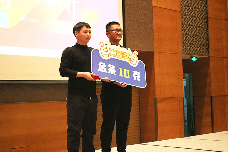 我們進(jìn)行了一場緊張刺激的抽*環(huán)節(jié)。經(jīng)過激烈的角逐,*終,有五位幸運(yùn)員工獲得了金條10克的獎品。大家紛紛表示,這份獎品不僅是一份物質(zhì)上的獎勵,更是一份精神上的鼓勵和激勵。